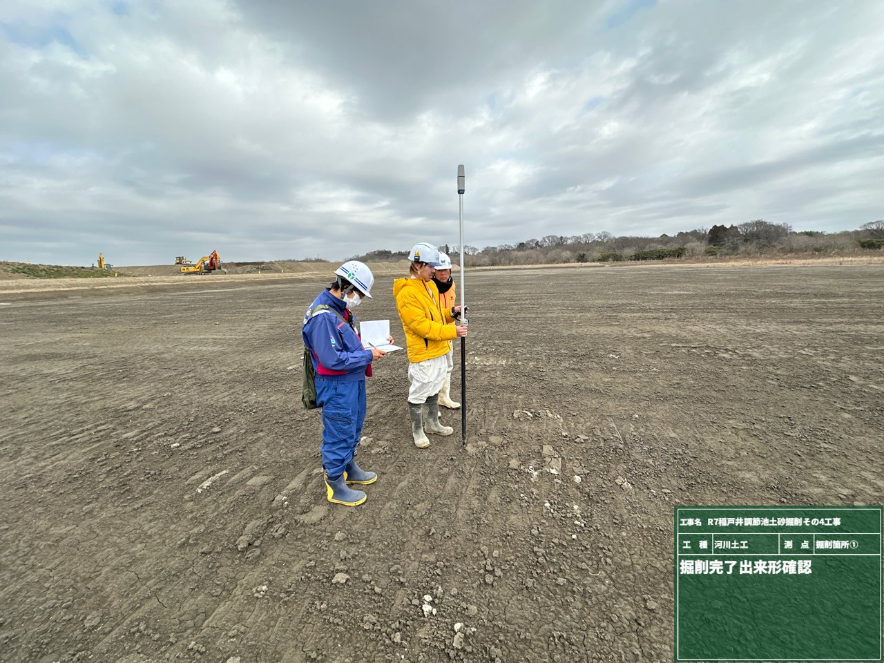 本工事では、水災害を防ぐために調整池の掘削を行い、これまで以上に洪水リスクを低減することを目的としています。