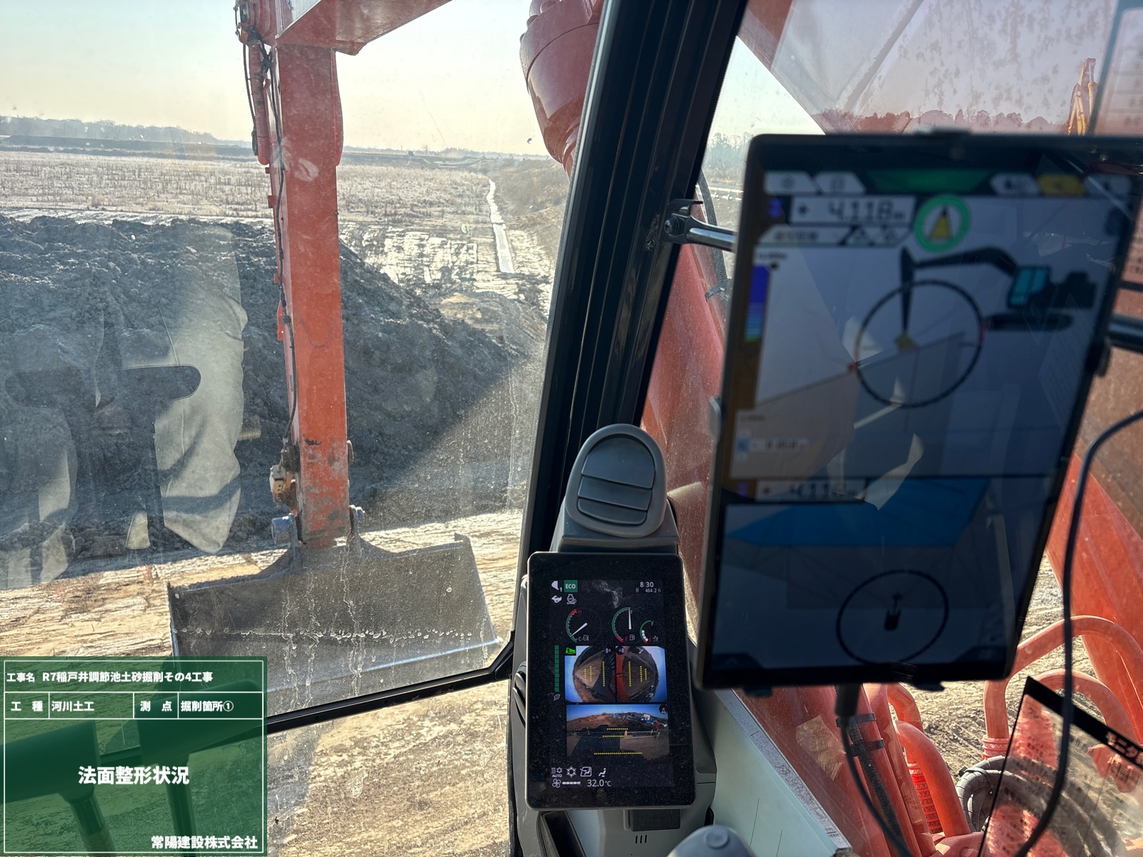 今回の現場日記はこちら、ICT施工中のバックホウ内部からお届けいたします🎤