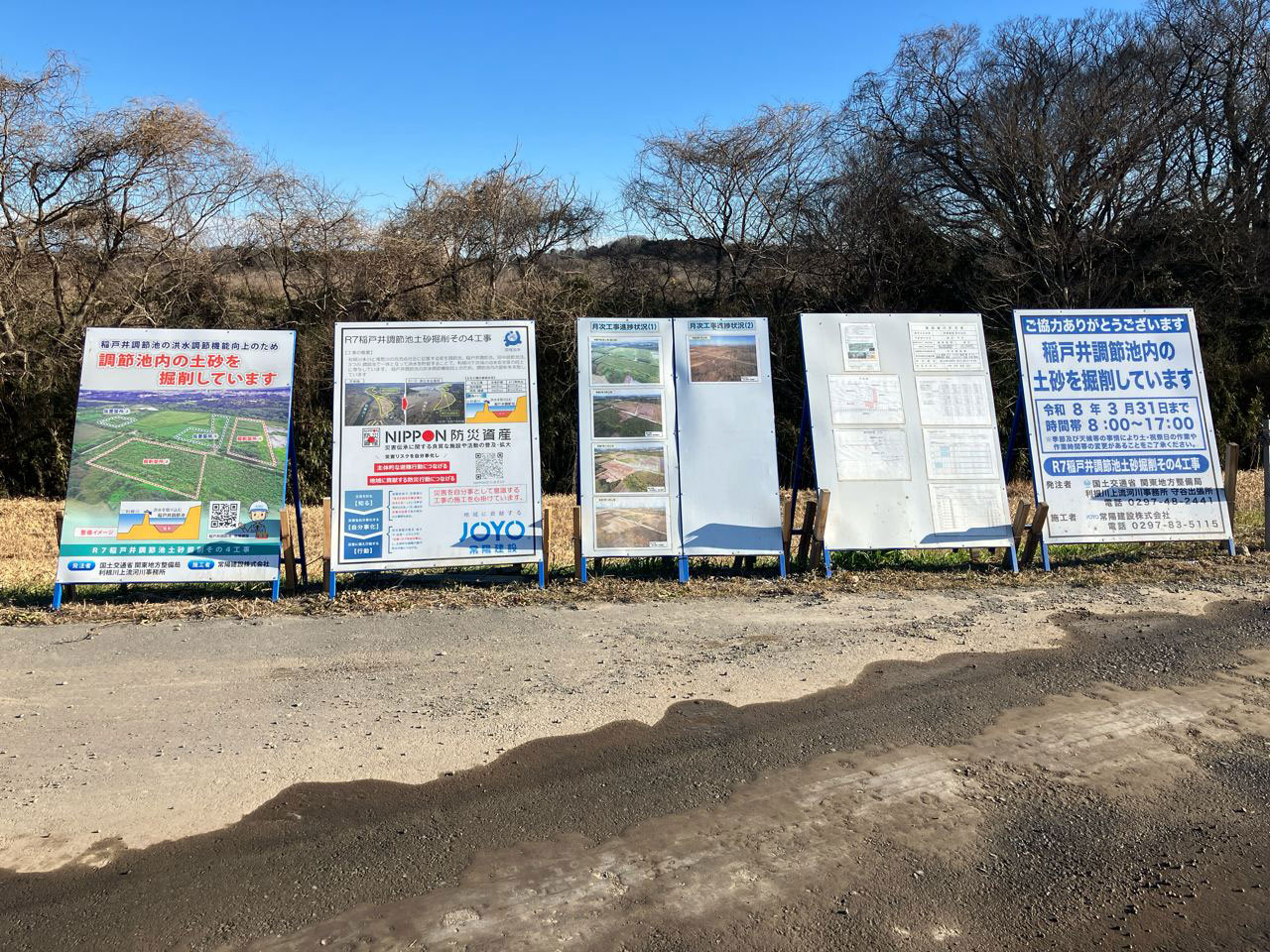 ずらりと並んだ工事看板。