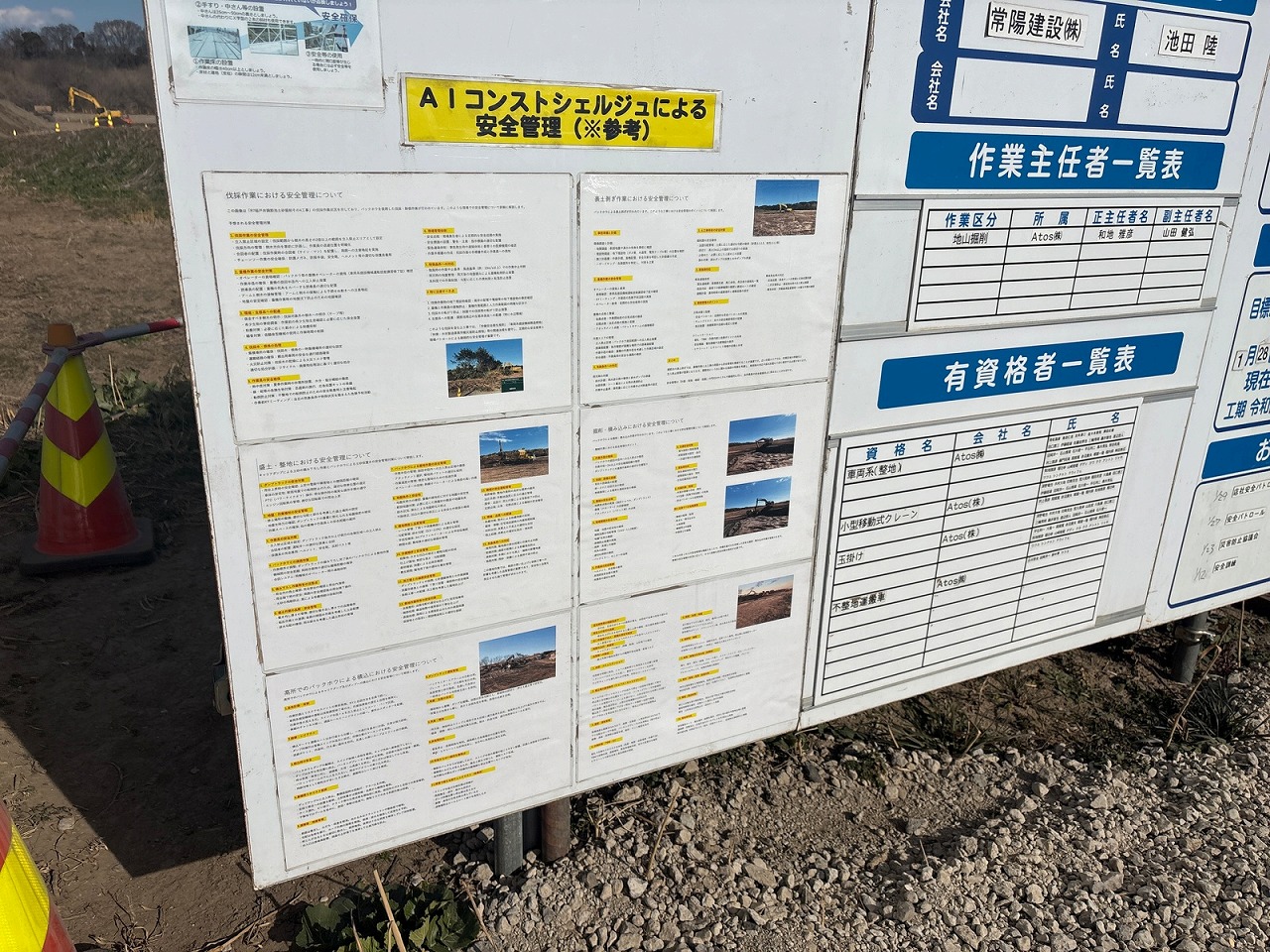 安全掲示板には、工事・事業内容・責任者名・安全目標・リスクの見える化などなど