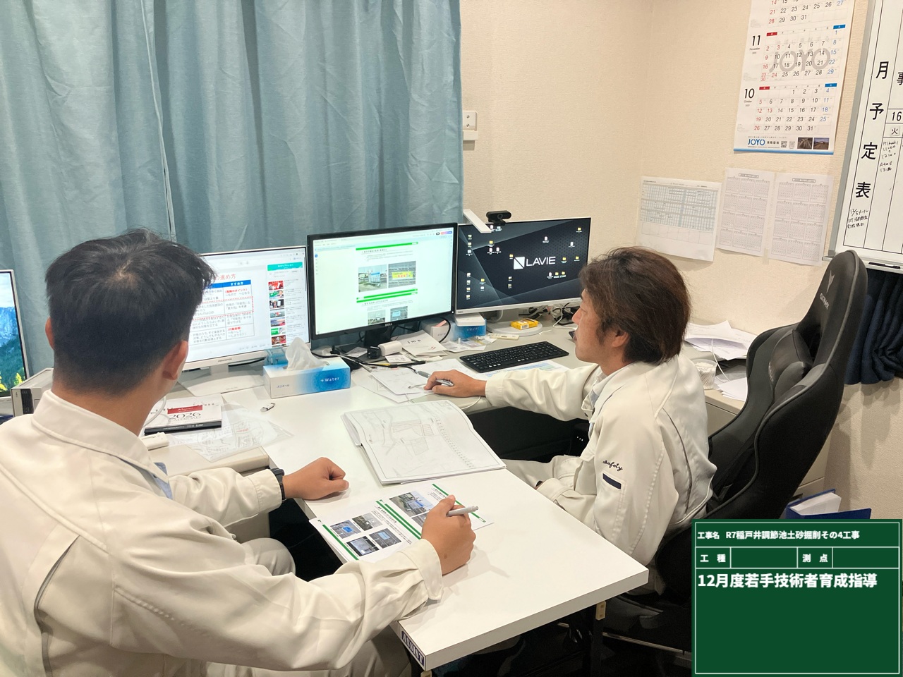 現場では、日々の作業とあわせて、若手技術者の育成指導も行っています。