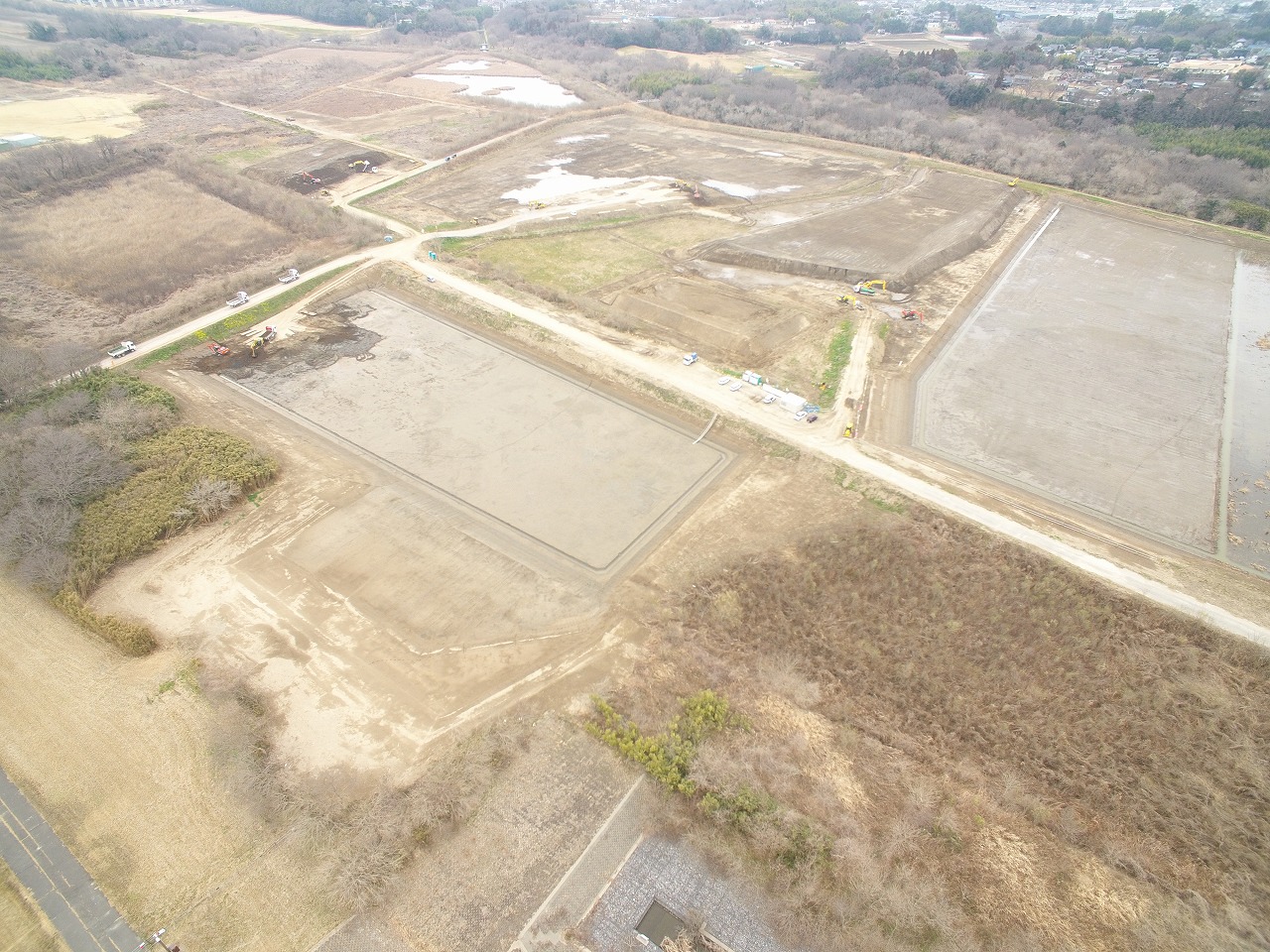 1月上旬の施工状況写真です。ICT掘削、土砂運搬、整地